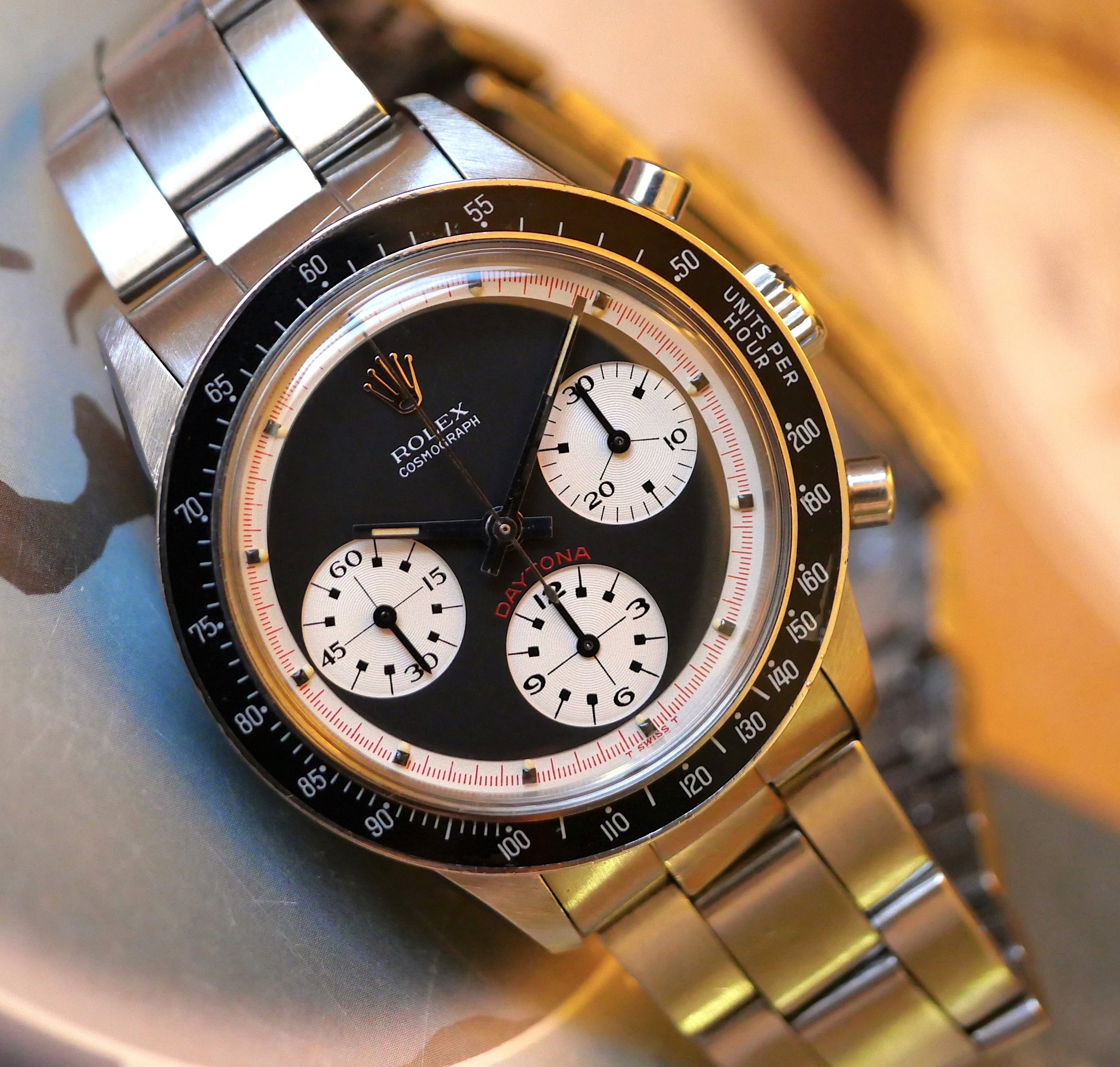 What sets this particular Daytona 6241 apart is its exceptional condition and the presence of original lumes, which have aged beautifully over the years, adding to its character and desirability among collectors. The stainless steel case, combined with its distinctive black dial, creates a timeless look that appeals to both watch enthusiasts and fashion aficionados alike. As one of the most sought-after models in the Daytona lineage, the Rolex Daytona 6241 Paul Newman represents a significant piece of horological history, making it a prized addition to any serious collection.